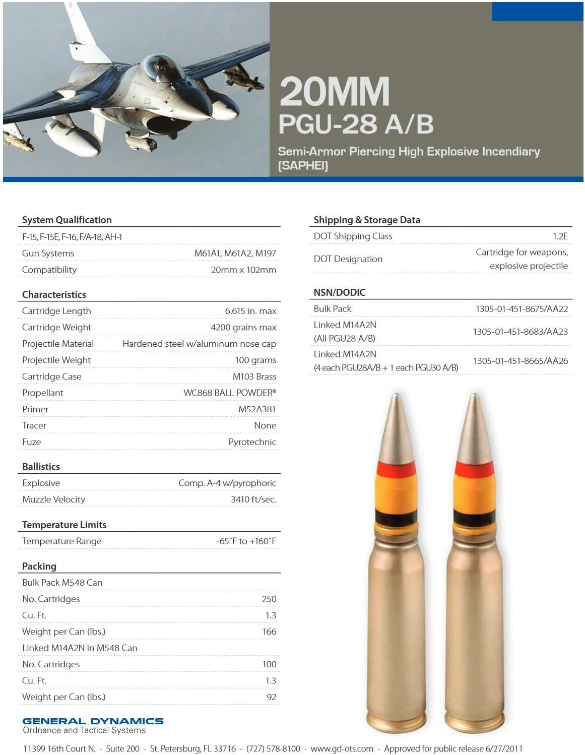 | Item Type Name | 20mm Dummy Round Projectile PGU-27A/B TP Fired by M61 Vulcan Gatling Gun |