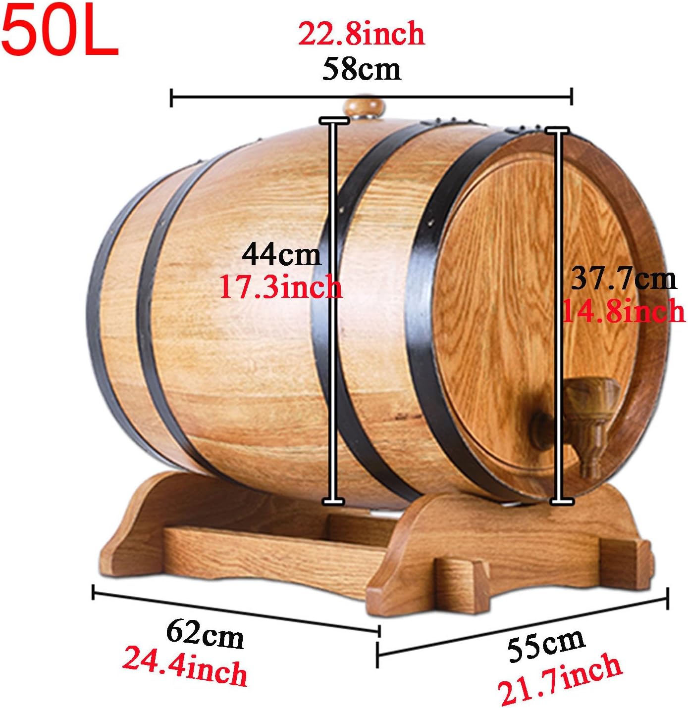 These buckets are very suitable for home use or commercial applications. The durable American oak wood is charred to perfection inside, slowly releasing the natural flavor and aroma of the wood into the beverage of your choice, whether it is wine, whiskey, other spirits, or even non-alcoholic beverages such as Selzer and soda water.featureProduct name: wine barrelProduct material: oakProduct original color: log/wine red blackProduct Size:3L: 24.5X26X29CM5L: 29.5X31X32.5CM10L: 34X37X38CM20L: 39.4X39.5X45CM30L: 45X44X49.5CM50L: 60X60X65CMProduct advantages: reliable quality, automatic exhaust gas function-note1. Manual measurement in our shop, there may be an error of 1-3mm, please refer to the actual product2. The color may be different, but please choose carefully within a reasonable range.
