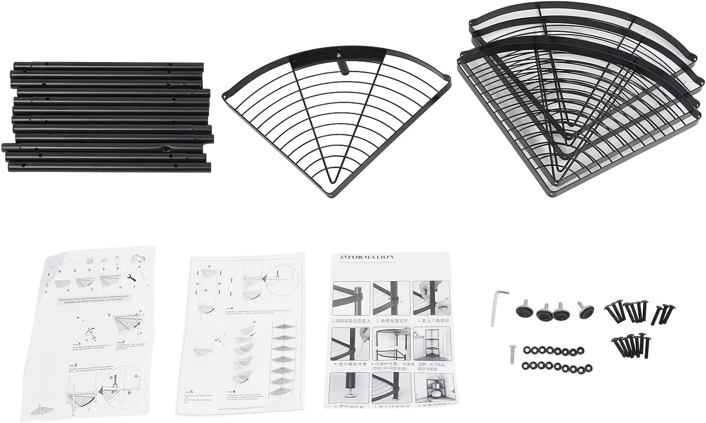 SpecificationMaterial: Carbon SteelColor: BlackProcess: Baking PaintStyle: ModernAssembly Required: YesMounting Type: Free StandingNumber of Tiers: 5Product Size: 34.5*34.5*133cm/13.58*13.58*52.36inFirst Tier Spacing: 25cm/9.84in2-5 Tier Spacing: 31cm/12.2inPackage Size: 37*37*15cm/14.57*14.57*5.91inEach Tier Load Capacity: 15kg/33.07lbsGross Weight: 5.42kg/11.95lbsNet Weight: 5.15kg/11.35lbsPackage Included1* 5-tier Pot Rack1* Chinese Assembly Diagram2* English Assembly DiagramsOther Accessories for Assembly
