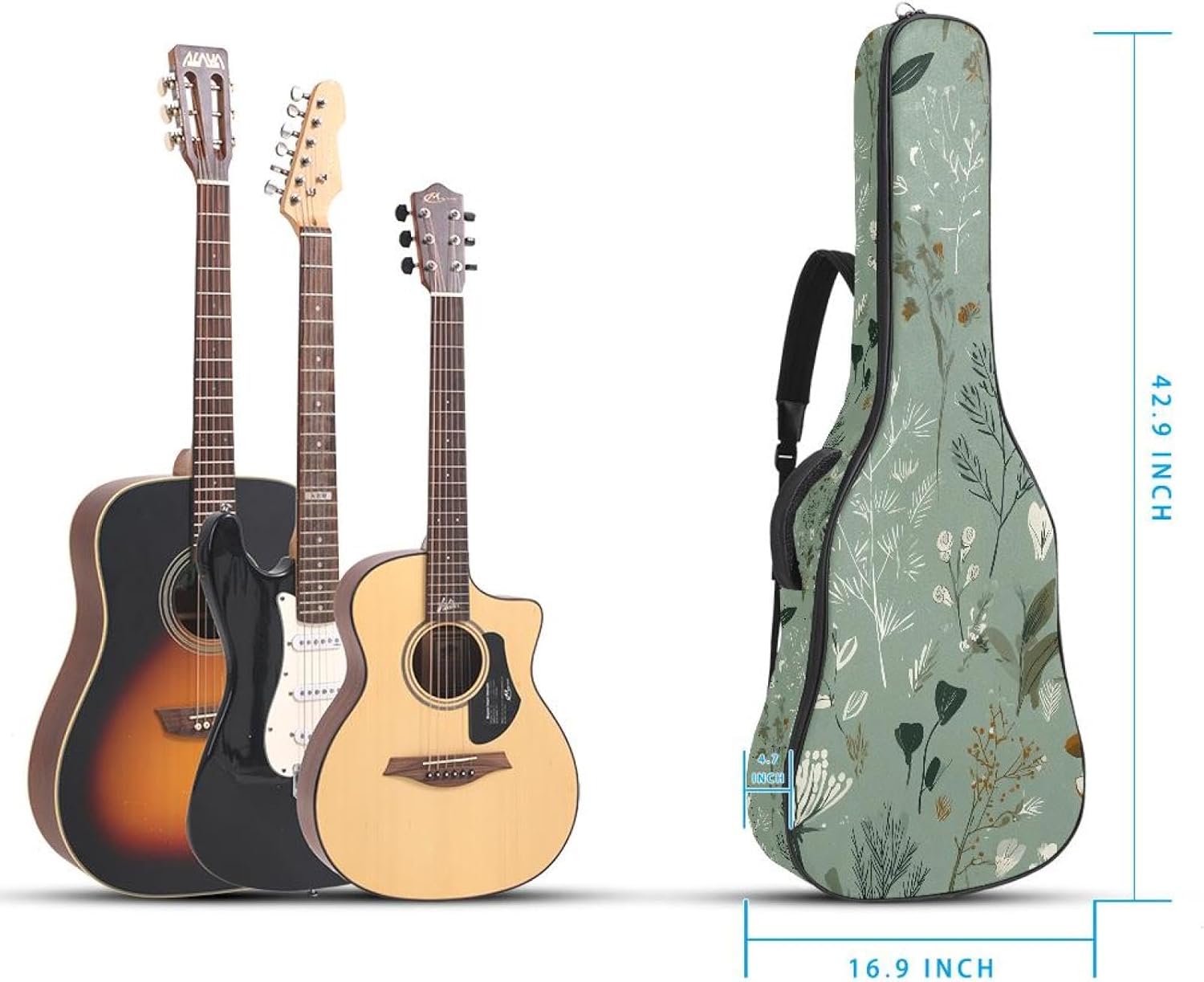Give your valuable guitar the premium protection it deserves. Our Cute Printed Guitar Gig Bag is engineered for the modern musician who demands both security and convenience. Whether you're heading to a gig, a practice session, or on a short trip, this bag ensures your instrument arrives in perfect condition, ready to play.Constructed from durable, waterproof Oxford cloth, this bag stands up to the elements and the test of time. The interior is a sanctuary for your guitar, featuring ultra-thick padded sidewalls and a soft, anti-scratch lining that cradles your instrument, preventing scratches and damage. The heavy-duty rubber base acts as a shield against everyday bumps and allows for stable placement on any surface.Organization is effortless with multiple dedicated compartments. Two main storage pockets keep all your essential accessories—like a foldable music stand, tuner, picks, cables, and extra strings—neatly sorted and easily accessible. Never fumble for your tablet or sheet music again; the specially designed back pocket keeps them safe and separate.For a perfect, secure fit, the adjustable neck support and internal Velcro strap ensure your guitar does not shift around inside the bag, providing peace of mind with every carry.Care Instructions: To preserve the quality and appearance of your gig bag, please do not machine wash. Simply wipe clean with a damp cloth to remove any dirt or stains.