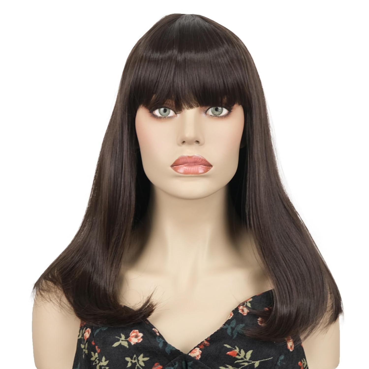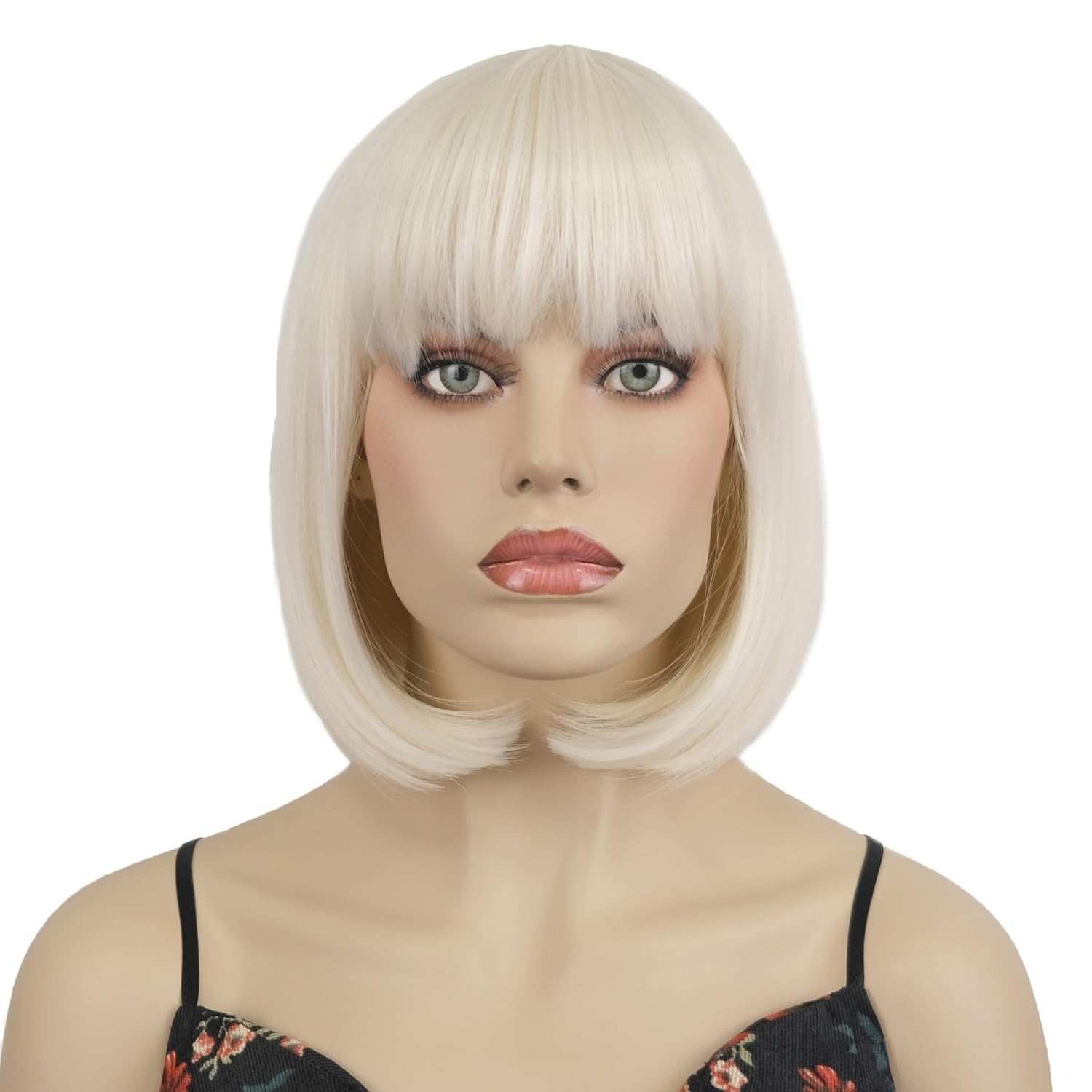 Aimole Short Straight Bob Wig Cute Flat Bangs Synthetic Full Women Wigs Material:100% FiberTexture: Bob StraightLength:8 inchesHairpiece for any formal or casual event, instantly add texture, color and length.Washing Method: (1) Wash in clod or warm water (2) Add a dash of Shampoo and wash gently (3) Rinse thoroughly in cold water (4) Do not brush when wet allow wig to drip fry (5) Brush wig into desired style after it is completely dry(6) Do not use curling irons, blow dryers, hot styling instruments or under sunshine