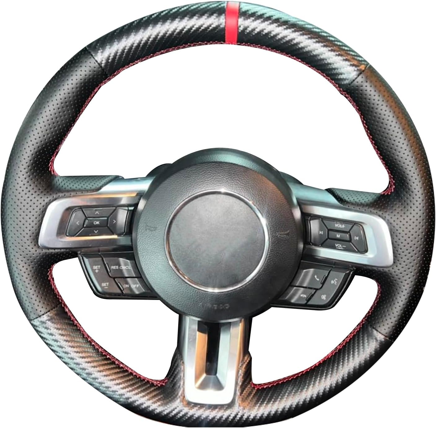 ๐ Suitable Only:Car models ONLY for reference because of the different Auto configuration, if not the same steering wheel, please send us your steering wheel photo: For Ford Mustang 2015 2016 2017 2018 2019 2020 2021 2022 Interior Accessories ๐ Material Type:Top quality of cowhide(full grain leather)or Suede or PU Carbon Fibe (contact us if you need ) ๐ Installation: Hand sewing the Steering wheel cover OVER your steering wheel! ๐*Packing*1 x Steering Wheel Cover *1 x Needle & Thread *1 x Double Sided Tape *1 x Yellow Small Blade *1 x Installation Instruction Paper