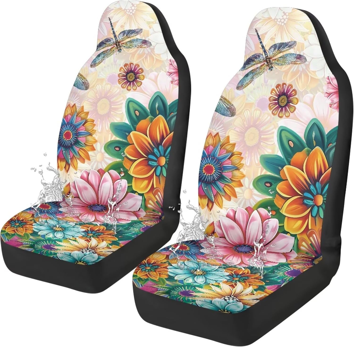 When you need seat protection? When you're traveling with your pet? While you're on a beach trip? At the end of your workout? Our car seat covers can protect your seats to create your car style! The car seat cushion cover is made of waterproof polyester that protects against spills and moisture. Ideal for protecting seats from spills and stains, keep your seats dry with this reliable and stylish car seat cover Our front seat covers are thoughtfully designed with an elasticized fabric that has elastic edges to hold the seat in place, and its non-slip fabric ensures that it won't slip off the seat, thus protecting your seat from sweat stains, scuff marks, pet footprints, and moisture Our washable car seat covers are very easy to install and remove our car seat covers, no tools required for installation.Back of covers offer an elastic fastening system to ensure the fit is snug and secure universally Each pack includes two car front seat covers; the front seat cover measures approximately 50.6 x 18.7 inches, or 129 x 47.5 cm, which ensures that it covers most car seats, providing ample protection against sweat and debris