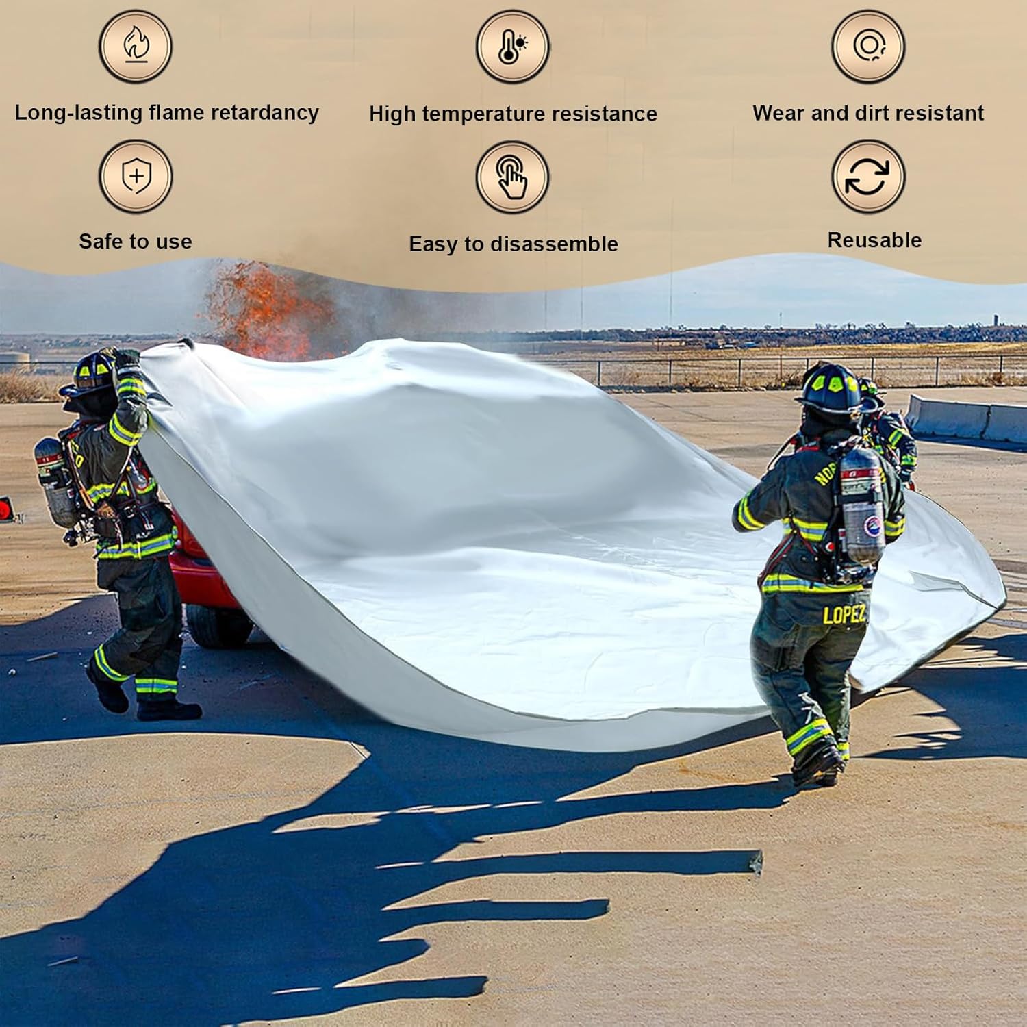 ✅FEATURES: ·Emergency Fire Blanket, Reusable Flame Suppression for Vehicle and Gas Station Safety.·This fire blanket provides quick, expansive coverage that smothers flames instantly, ensuring effective control in emergencies.·Crafted from lightweight fiberglass fabric for effortless storage and portability. The double-sided silicone coating provides comfort and is non-irritating. It can be stored at room temperature.✅PARAMETER:·Type: Car Fire Blanket/Flame Retardant Tarpaulin/Fire Cloth·Material: Fiberglass/Silicone Cloth·Fire Resistance Temperature: 1580~1770°C·Operating Temperature: 200°C·5 Sizes: (Length x Width)3*4m , 4*6m , 6*8m , 6*9m✅PACKAGE:1x Fire Blanket (with storage bag)