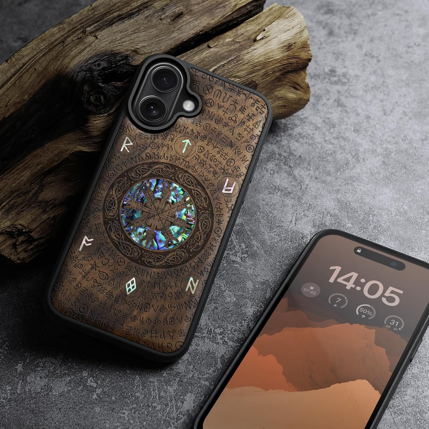 | Additional Features | Natural solid wood back panel and laser engraving, The unique solid wood keeps the palm dry and prevents fingerprints from sticking to the surface of the case, keeping it clean and elegant |