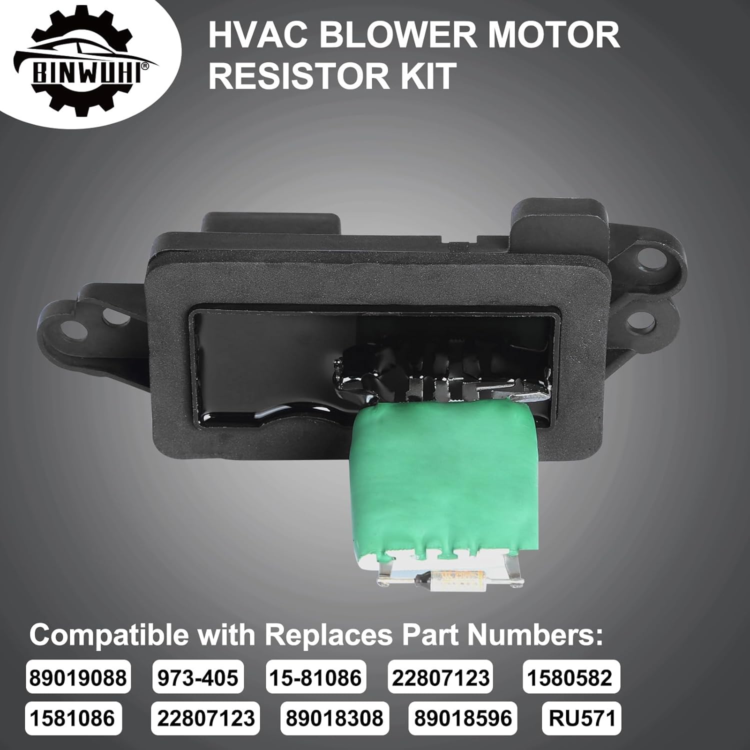 The AC Blower Motor Resistor controls the fan speed in your AC and heating system. If you can no longer adjust the air speed with your AC controls or your AC system no longer blows chances are you need a new Blower Motor Resistor. This COMPLETE KIT includes the Blower Motor Resistor and New Wire Harness. The AC Blower Motor Resistor is located on lower passenger side dash and is easily accessible by removing a few screws. Installation can be completed in under 20 minutes and you can save hundreds by doing this repair yourself. Product Description Part Name: HVAC Blower Motor Resistor Fitment Type: Direct Replacement Warranty: Two-year Warranty Note: w/o Auto. AC_4 Holes Mounting_Manual Control Vehicle Information Replacement for : 2003-2006 Cadillac Escalade ESV, EXT 2003-2006 Chevy Avalanche 1500 & 2500 2003-2006 Chevy Silverado 1500, 1500 HD, 2500, 2500 HD, 3500, 3500 HD 2003-2006 Chevy Suburban 2003-2006 Chevy Tahoe 2003-2006 GMC Sierra 1500, 1500 HD, 2500, 2500 HD, 3500, 3500 HD 2003-2006 GMC Yukon and Yukon XL 【NOTE】-“DOES NOT FIT VEHICLES WITH AUTO AC CONTROLS.” Compatible with The Following Part Numbers: 89019088 973-405 15-81086 22807123 1580582 1581086 22807123 89018308 89018596