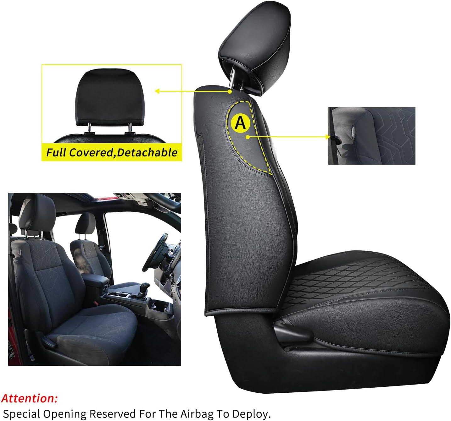 | Included Components | Full Set of Seat Covers (Front+Rear) + 5 Headrest Covers + Installation Accessories, No console cover included |