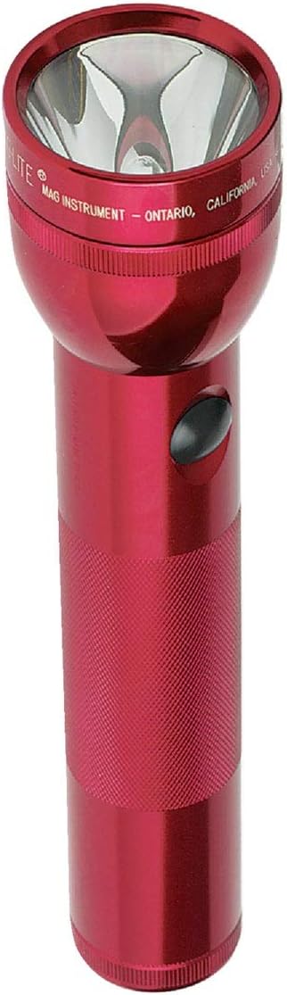 10 in. of high-strength aluminum alloy case in red. It features adjustable spot to flood beam rotating switch and complete O-ring seals. Has two high intensity White Star Krypton Gas Lamps for enchanced brilliance and extended range with 36 hours lamp life and 14 hours continuous battery life and 11K Peak Beam Candlepower. It requires 2-D Cell alkaline batteries. Weighs 23.80 ounces with batteries.ATTRIBUTES Batteries Included: Yes