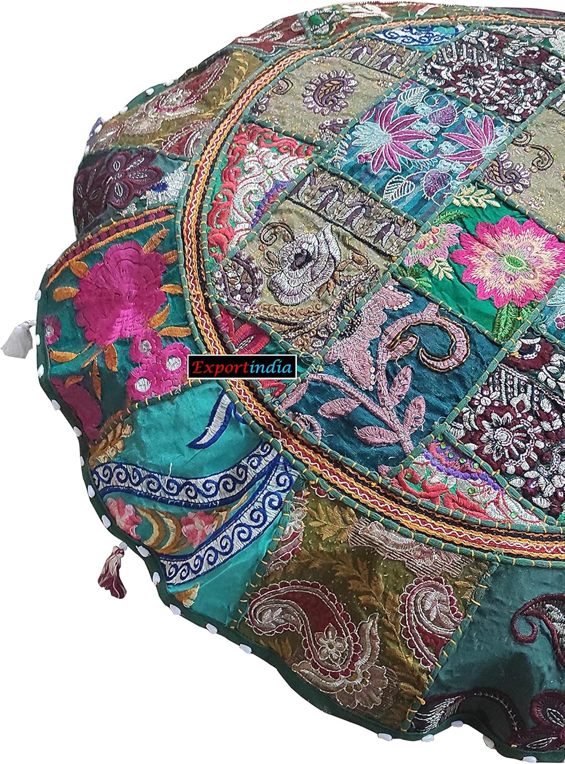 ★DESCRIPTION:- The Large Indian Pouf Cushion Ottoman Cover pouffe pouffes Moroccan Ottomans Art from Rajasthan India. This Indian pouf cushion ottoman cover pouffe pouffes is completely handmade in villages with the old and vintage fabric. This beautiful pouf ottoman cover pouffe pouffes is a best way to add multi color to your Bedroom, Hallway, Home/office/study, Living room. It can also be considered as decorative item as they are widely used for home decoration in a very stylish way. This gorgeous pillow cushion cover will add warmth style and elegance to any room in your home.Usage: Almost any For Home Decor Purpose Like- Floor Outdoor Cushion CoverMeditation PillowOutdoor DaybedLiving Room AccessoriesBed RoomDecorative AccessoriesFootstoolOutdoorFor Gifts Product Specification Pouf Design: Round shape made using vintage fabric.Zip Closure At The Bottom Of The Cushion.Fabric: Cotton, Old Saris, Vintage Wedding Gowns, Bridal Dresses.Pillow Is Made Of High Quality Construction That Is Triple Stitched.Color: Same Color As PictureMaterial: CottonCare: Dry Clean Only★Note: Only cover Pillow insert is not included★FILLING INSTRUCTIONS:his stunning piece can be easily filled with scraps of fabric or store-bought filler material, and used as a comfortable cushion to sit on! Comes unfilled so as not to increase shipping weight. Get a few to toss around the house to imbue it with color, coziness and comfort. This authentic and ethnic piece of Indian artistry is a perfect addition to any household! The Zipper backing for inserting the cushion. you can fill with cotton or scraps of fabric or polystyrene beans which is used for bean bag.