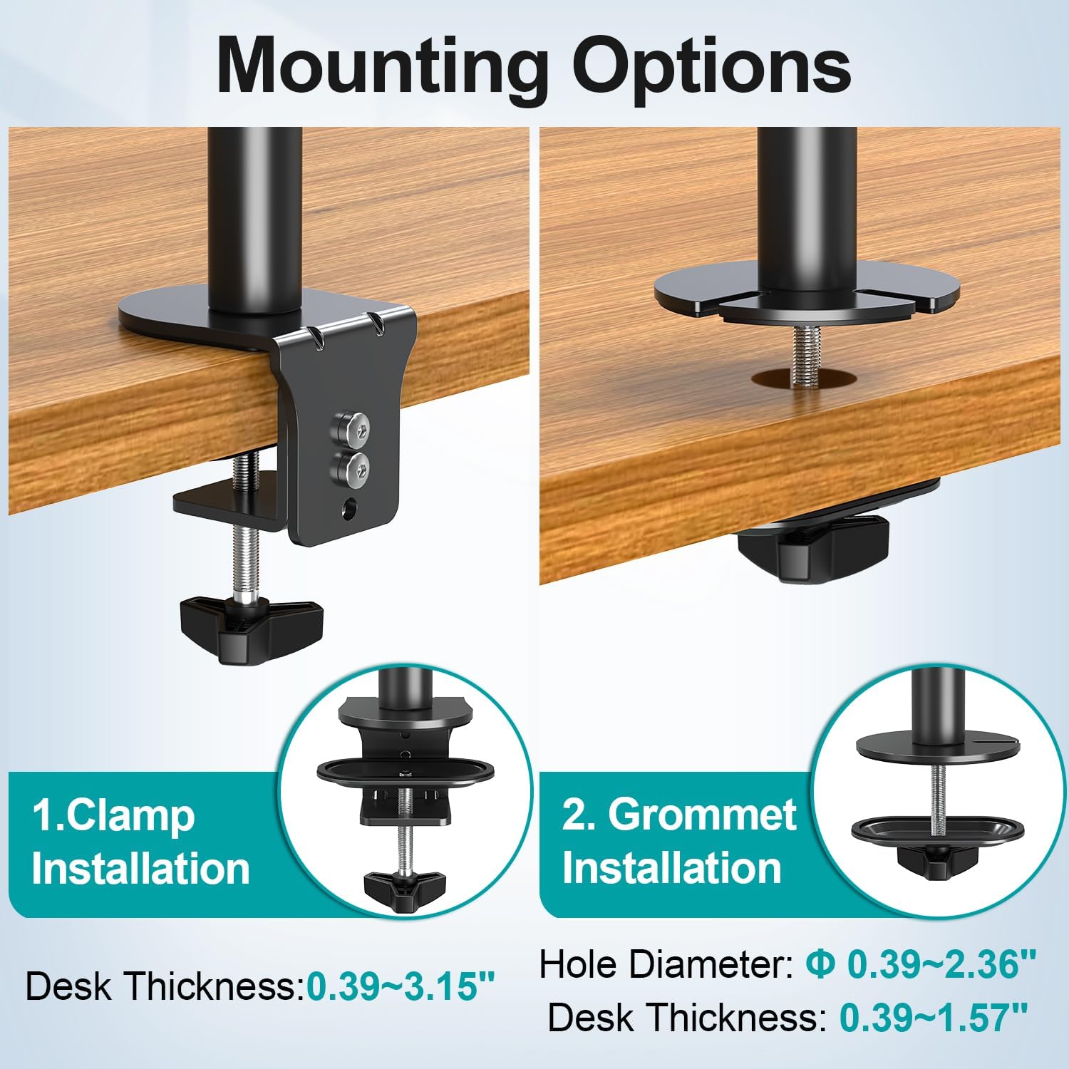 Designed for Stacking ModeThis monitor stands for 2 monitors and supports stacking 1 monitor on top of the other, making it convenient for design work and data analysis, etc.Wide CompatibilityFits most flat or curved 13,19,21.5,22,23,24,27,29,32 computer screens, holds up to 17.6lbs per monitor, compatible with VESA pattern 75x75mm/100x100mm. Create Comfortable Viewing AnglesThis vertical dual monitor mount offers tilt up and down ±30°, left and right ±90°swivel, 360° rotation.The monitor can be placed in portrait or landscape orientation.Sit-Stand FlexibilityThis dual monitor stand features a 31.7" center pole, enabling you to set the screens to the perfect viewing height for comfort and efficiency, whether you're standing or seated. Additionally, the vertical mount supports two displays, freeing up valuable desk space and maintaining a clean, organized workstation.
