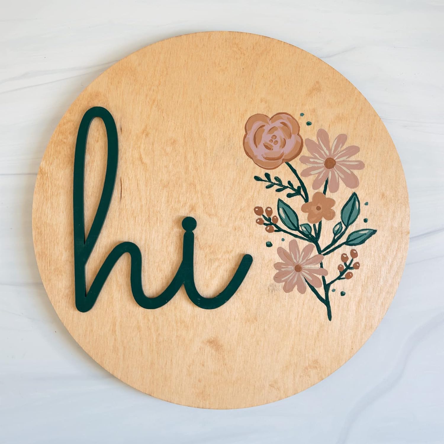 Swap your worn welcome sign for this fresh floral greeting. Made from TSCA Title VI compliant White or Yellow Birch, the Actual Dimensions of the circle are 0.47" x 14". The "hi" cutout is 1/8” x 5.5” x 6”. The kit weighs approximately 2.1 lbs. Choose between 2 curated color palettes -- bright or muted -- or buy both and craft an even greater creative experience. Spring will never feel so welcome!