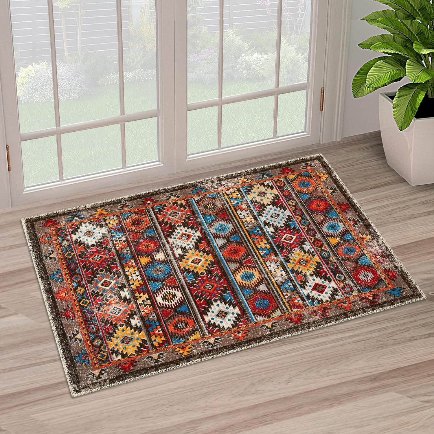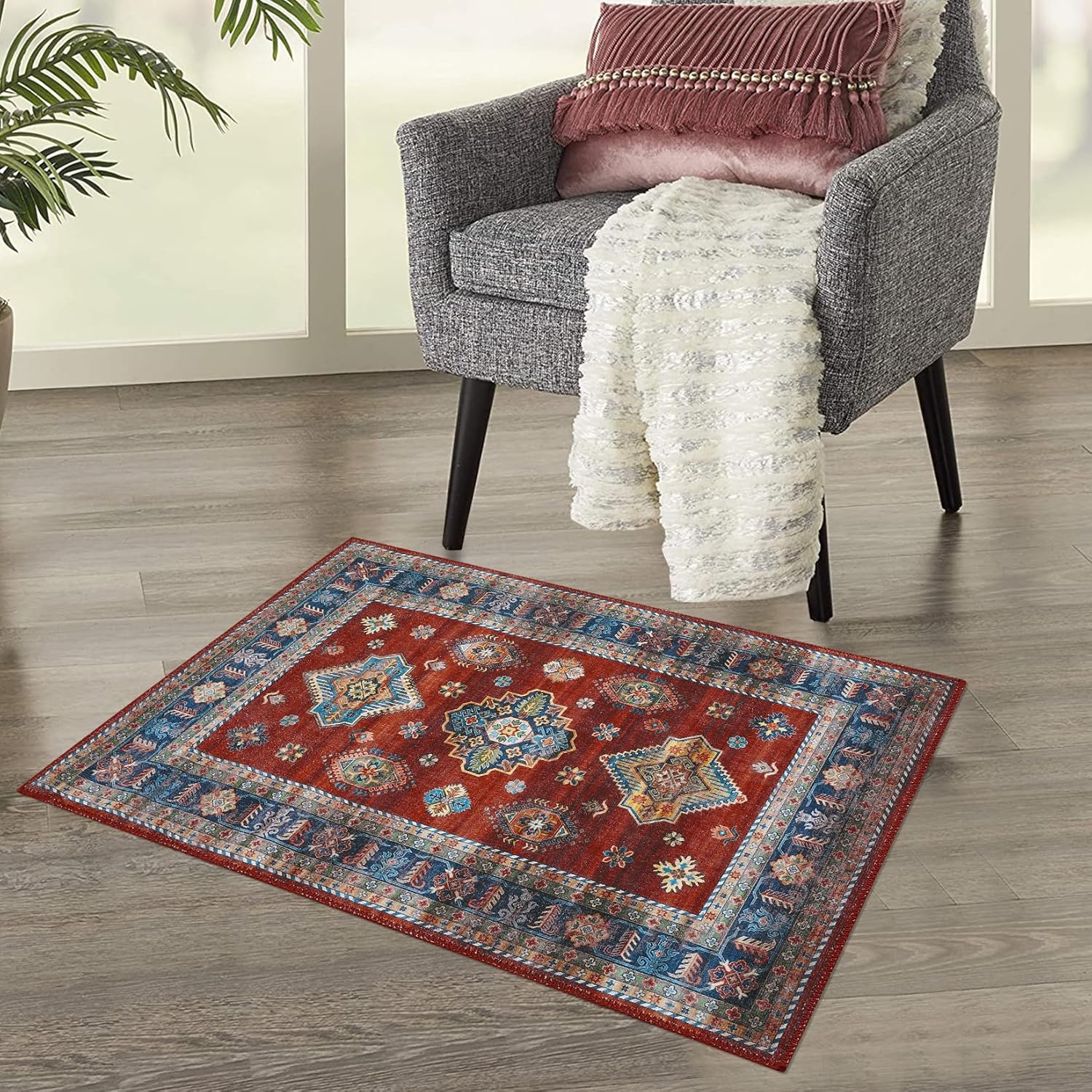 Vintage Printed Carpet Non-Slip Living Room Indoor Carpet Distressed Bedroom Carpet Machine Washable Carpet Entry Game Room Dining Room Office Featured Floor MatThe low pile and lightweight rug is stain & water Resistant, simply toss in the machine for a quick wash, and line dry or dry on air-only cycle without heat. Your machine washable area rug is so easy to clean and care for!Features: Washable rugs; Entryway rugs; Running rugs; Floral rugs; Boho rug; Living room rugs; Playroom rugs; Bedroom rugs; Dining Room RugNON-SLIP: Our non-slip rug is made of high quality TPR backing, keeps the rug securely in place and effective at preventing the rug from sliding on the floor, while protecting the floor from scratches made by heels and sharp objects, for children playing on the floor is a great choice, perfect fit for high traffic areas.STYLISH: This vintage washable area rug is stylish and versatile, with a classic design at a reasonable price point. Distressed design beautifully enhances any room of the home, from the living room, dining room, bedroom, entryway, nursery, dorm room, study, home office, or eat-in kitchenAvailable in a variety of sizes to best suit your decor, such as 2'x3', 2'x6', 4'x6', 5'x7', 8'x10', 9'x12'.