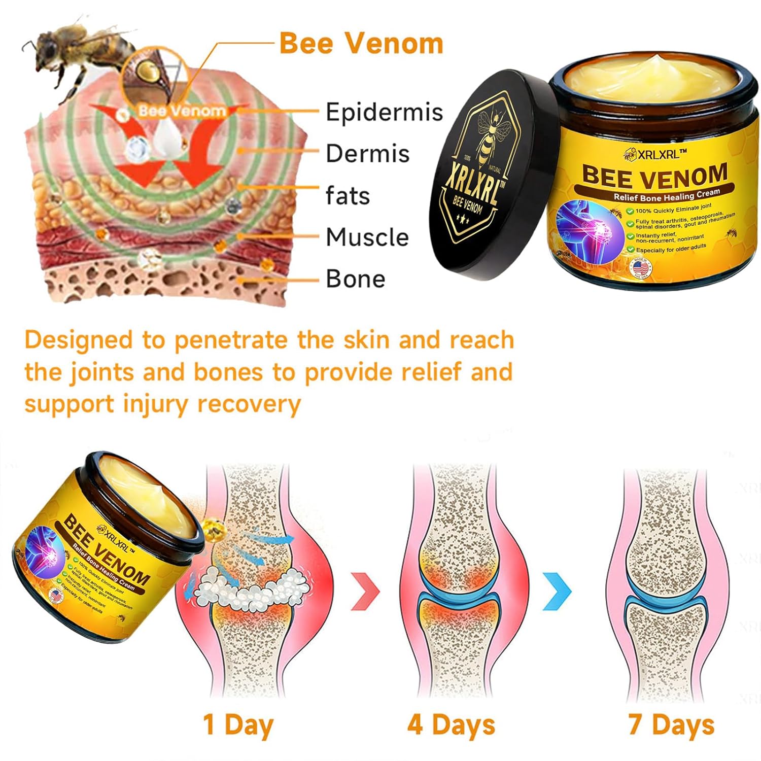 XRLXRL Bee Venom Relief Bone Healing Cream, Professional Bee Venom Cream for Activities, Bee Venom Joint & Bone Therapy cream